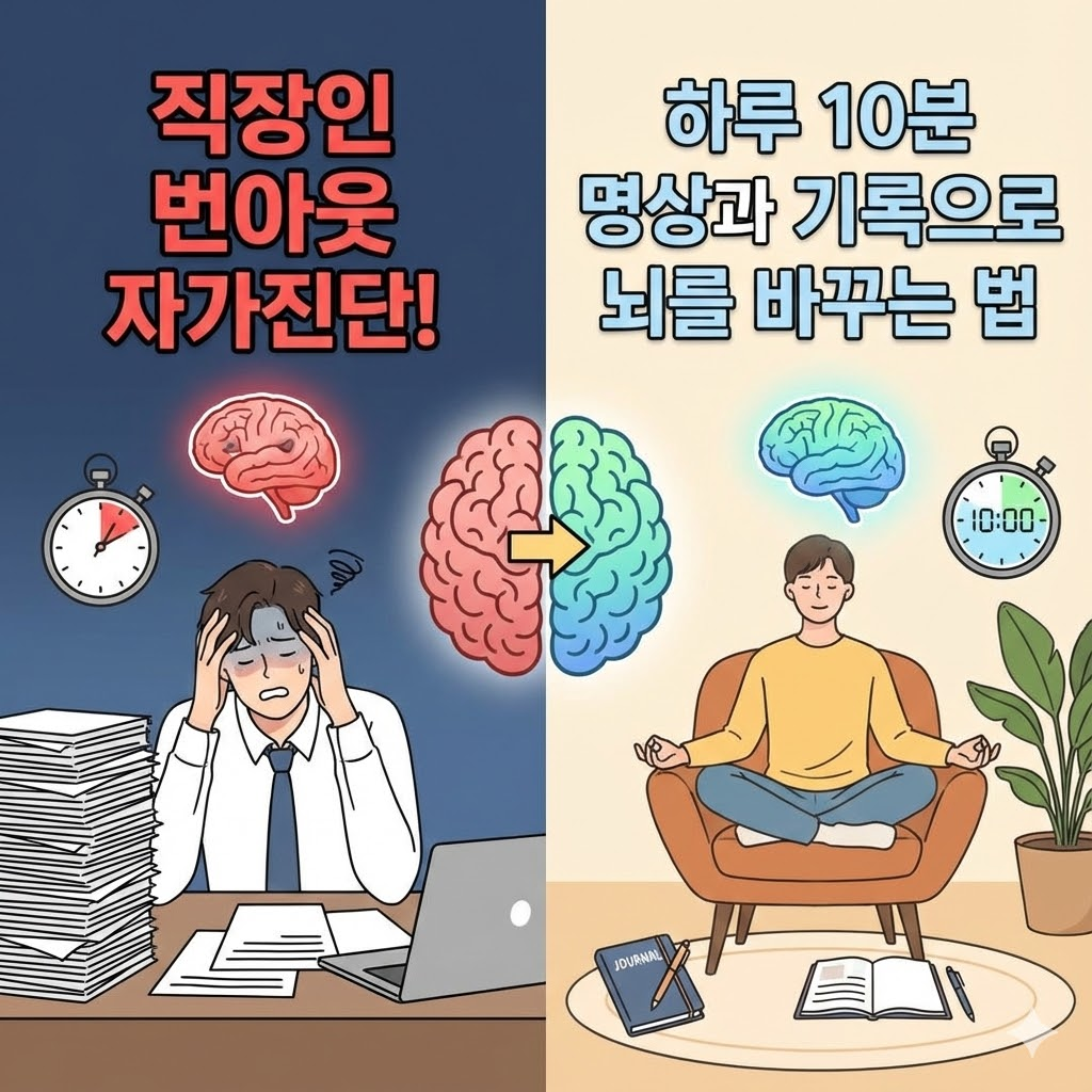직장인 번아웃 자가진단! 하루 10분 명상과 기록으로 뇌를 바꾸는 법